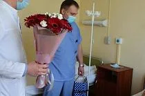 В преддверии 9 Мая в медицинских организациях региона поздравляли с праздником не только сотрудников, но и пациентов. Так, в областной больнице специалисты сосудистого центра поставили новый кардиостимулятор 93-летнему ветерану войны. После проведения операции от имени руководства и всего коллектива учреждения с предстоящим праздником пациентку поздравили заместитель главного врача по терапии Денис Кобер и заведующий региональным сосудистым центром Денис Болховской.